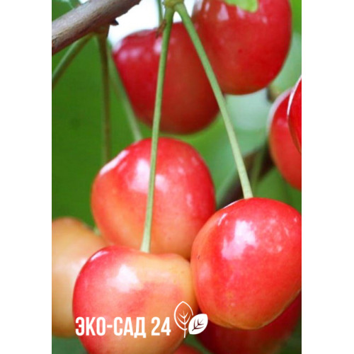 Цветёт дерево поздно, в середине мая, образуя трёхцветковые соцветия. Сами цветочки маленькие, белые, лепестки расположены свободно. Плодоносить черешня начинает на 5 год, урожай даёт поздно, в конце июля или начале августа. С одного дерева можно собрать 20–25 кг ягод средней величины по 4–4,5 г каждая. Зрелые плоды округлой формы с плотной кожицей розовато-жёлтого цвета с красными подкожными точками. Мякоть черешни плотная, хрящеватой структуры, сладкая с горчинкой. Косточка отделяется не очень хорошо.